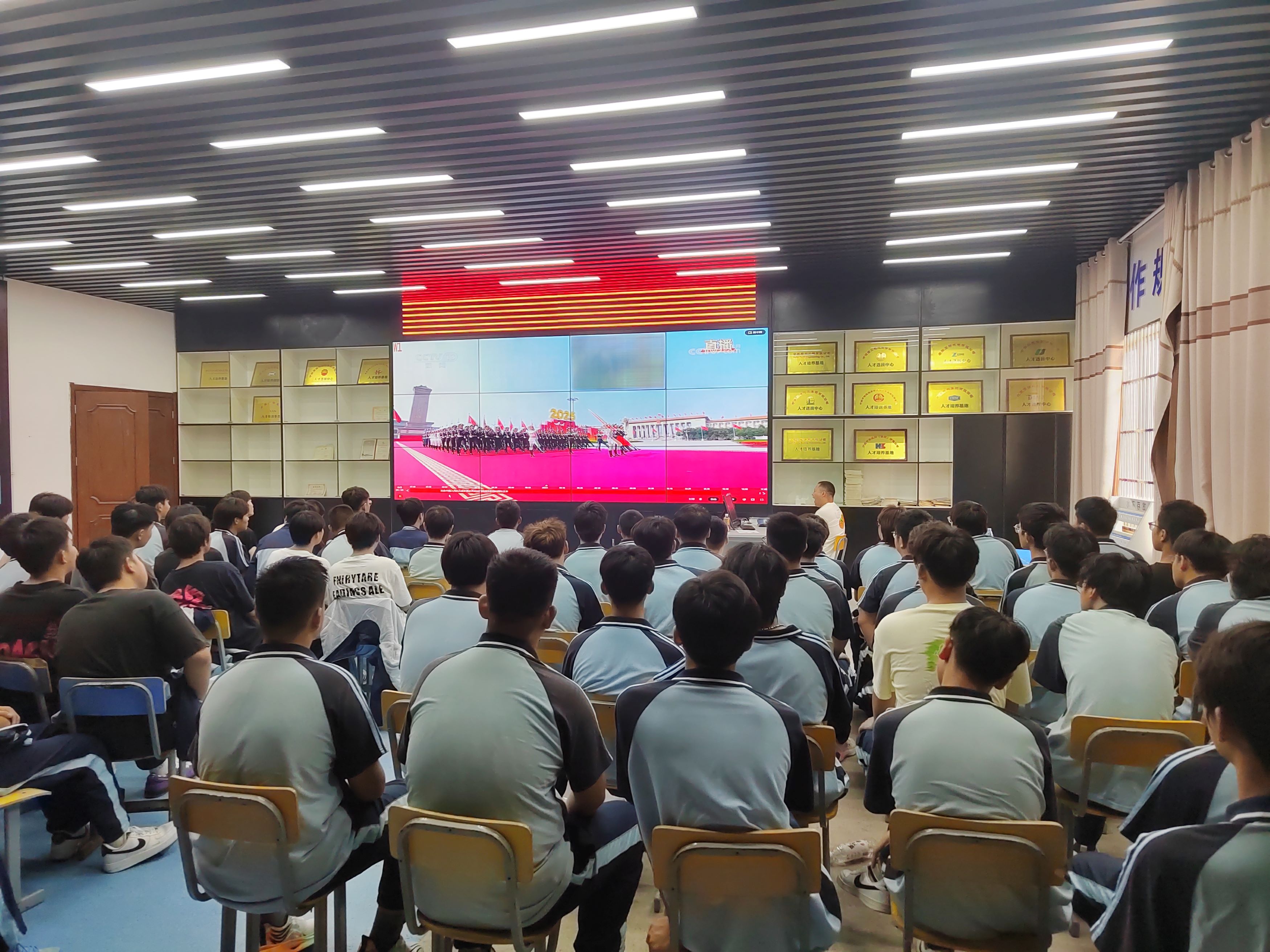 机电工程系组织师生收看纪念中国人民抗日战争暨世界 反法西斯战争胜利80周年大会