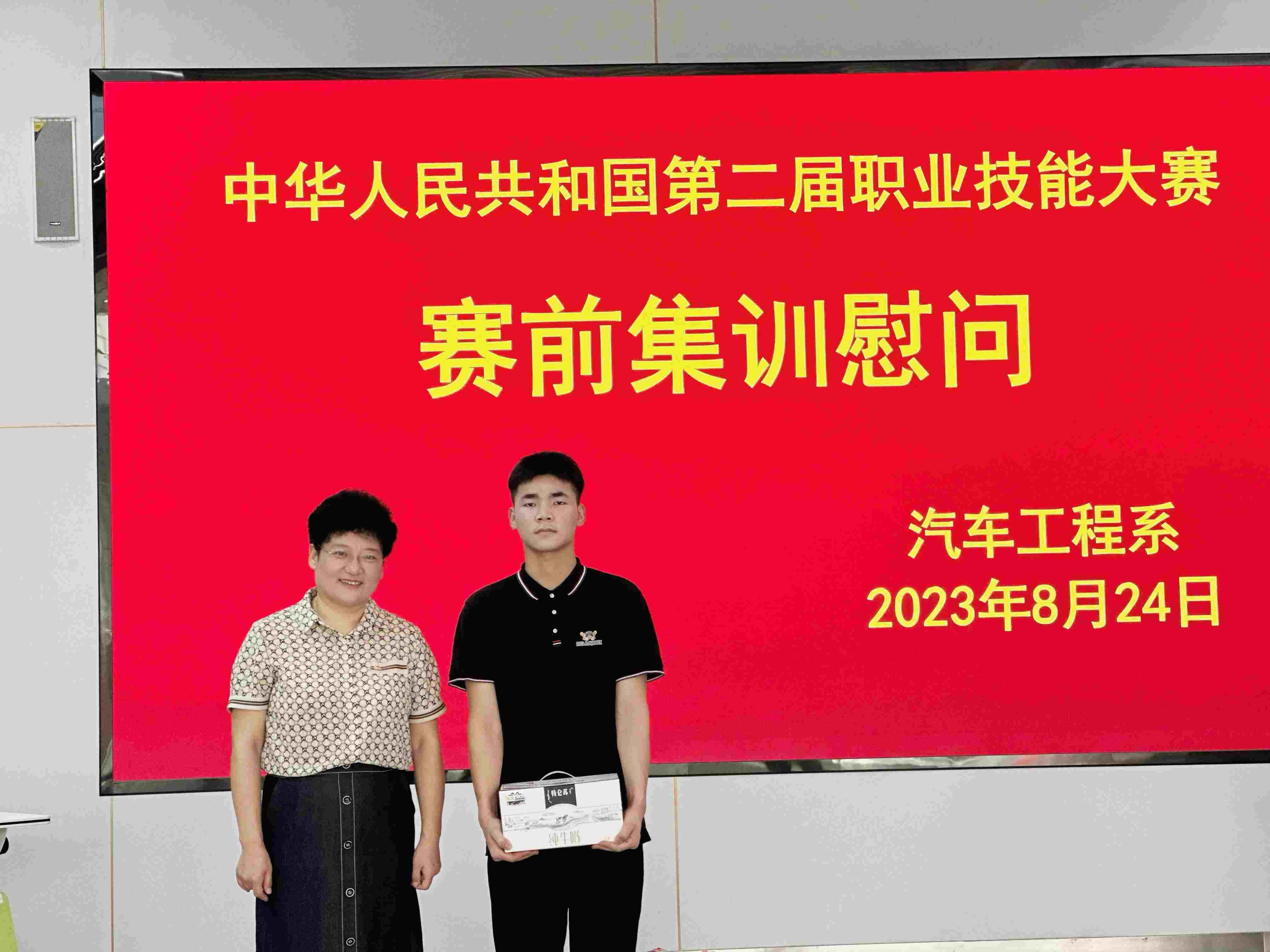 8月24日上午,阜阳技师学院副院长吴静和系部教师走访慰问了第二届职业技能大赛参赛队员。