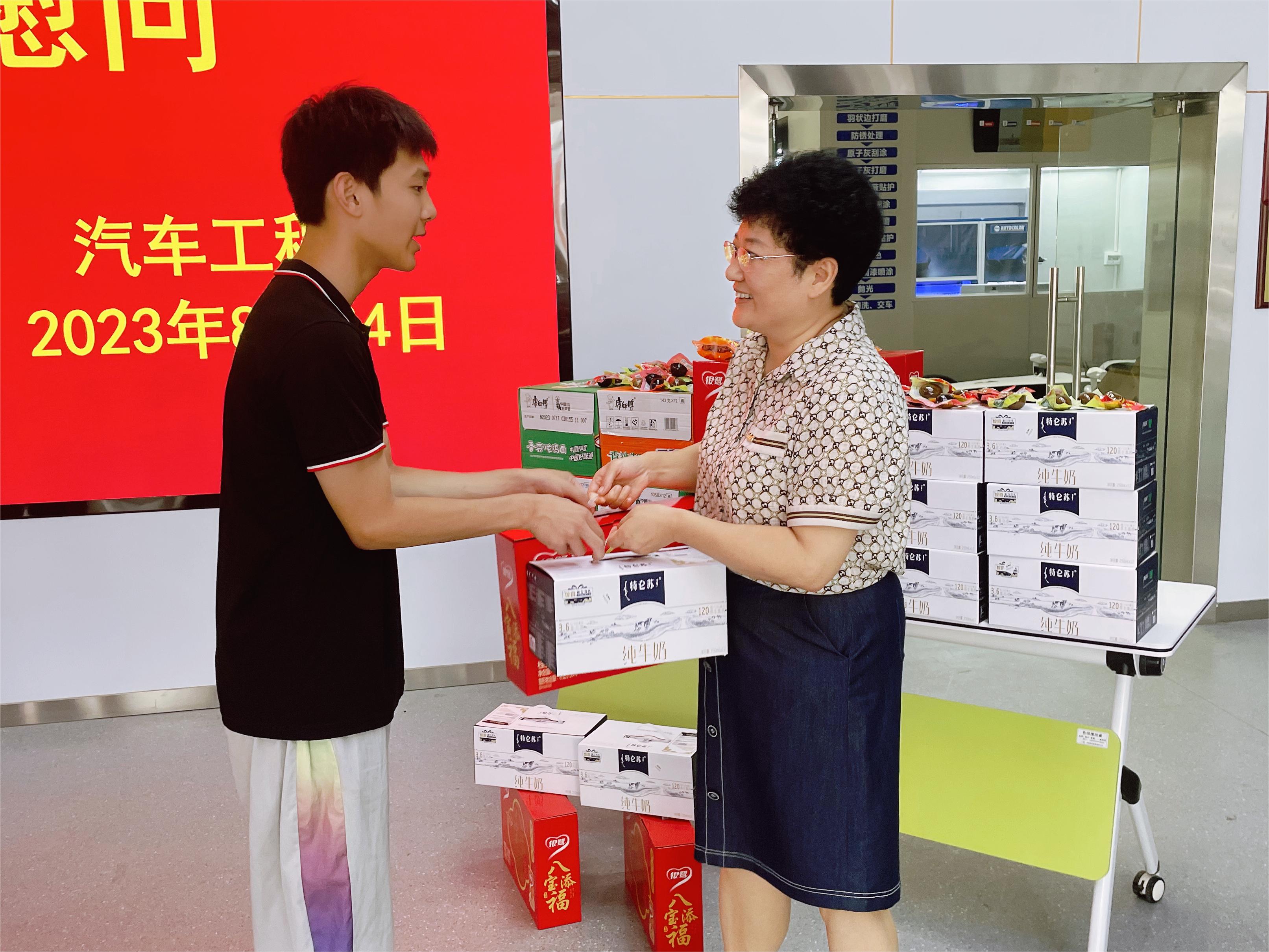在汽车系一楼大厅,学院领导和系部老师与参赛队员亲切交谈,并送上了慰问礼品。详细询问了各组同学的比赛准备情况,鼓励大家以平和的心态参加比赛,注意休息,增强体能。祝愿同学们在比赛中良好发挥,取得优异的成绩。通过此次慰问让参赛队员深受鼓舞,大家纷纷感谢学院领导的关怀,表示一定在比赛中全力以赴,以优异的成绩为我校争光。