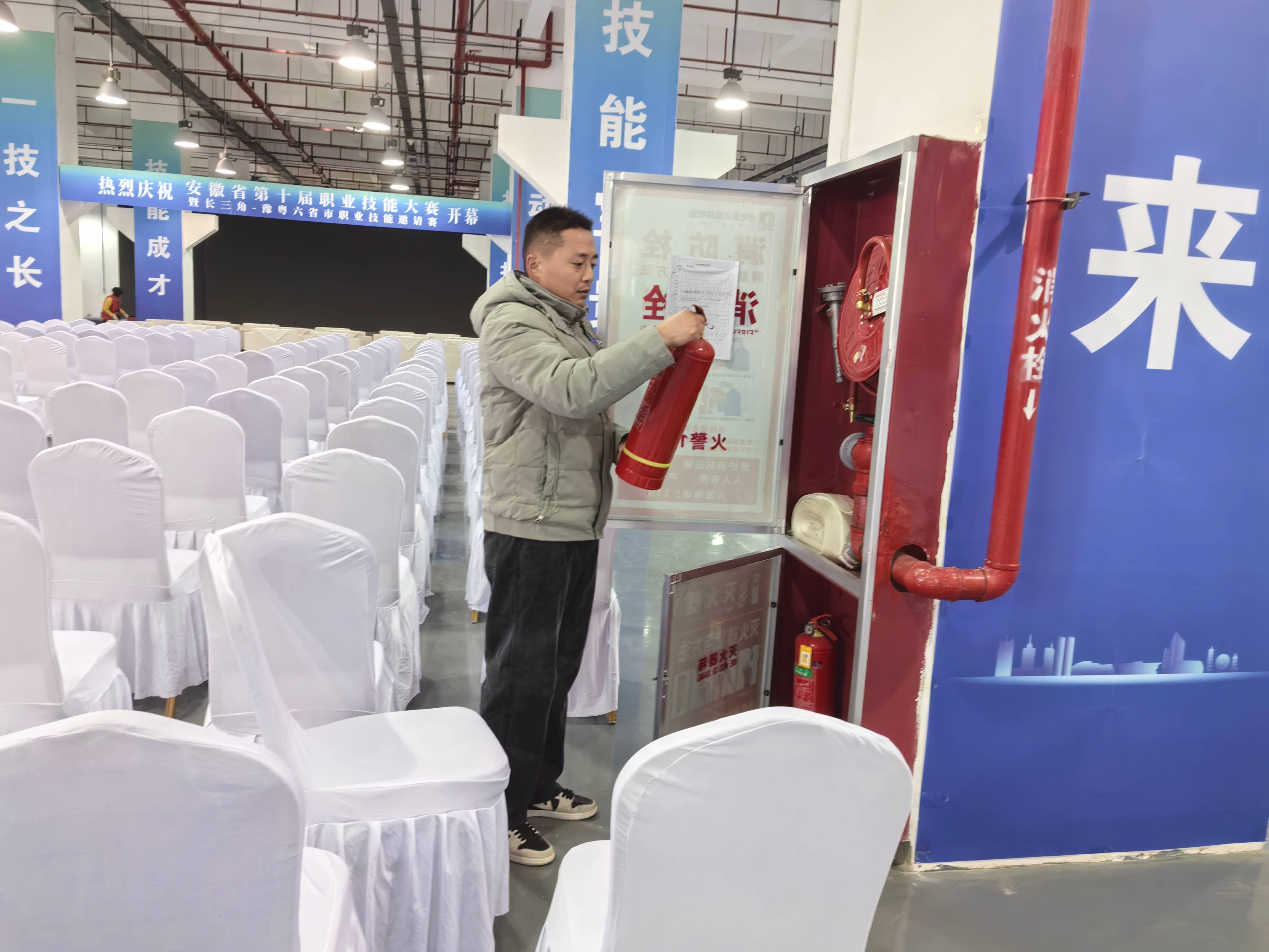 近日,全省第十届职业技能大赛在阜阳技师学院盛大举行,此次大赛吸引了众多师生与业界人士参与。为确保全省技能大赛在我院顺利举行,2024年12月18日,我院院长靳柯娟与副院长陈伟亲自率领保卫处人员,对大赛现场进行全面细致的安全检查。重点检查了场地设施的安全性、消防器材的配备与完好情况、交通安全、紧急疏散通道的畅通性等。对检查中发现的个别问题,现场安排保卫处人员立即进行处理,确保在大赛开始前整改到位。