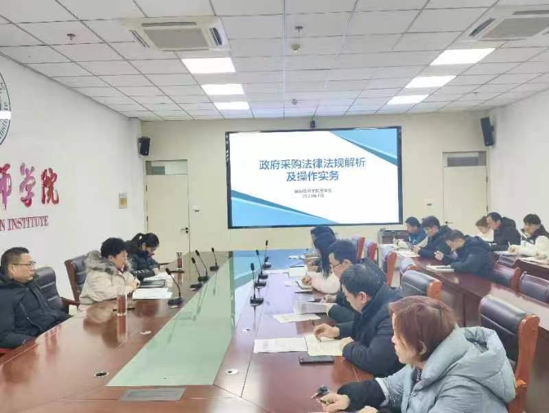 为进一步规范和提升学院的招标采购工作, 2024年1月19日学院在办公楼六楼会议室进行了招标采购文件法规培训会议。副院长吴静、陈伟,各科室、系部和负责具体业务同志参加会议。会议由吴静主持。