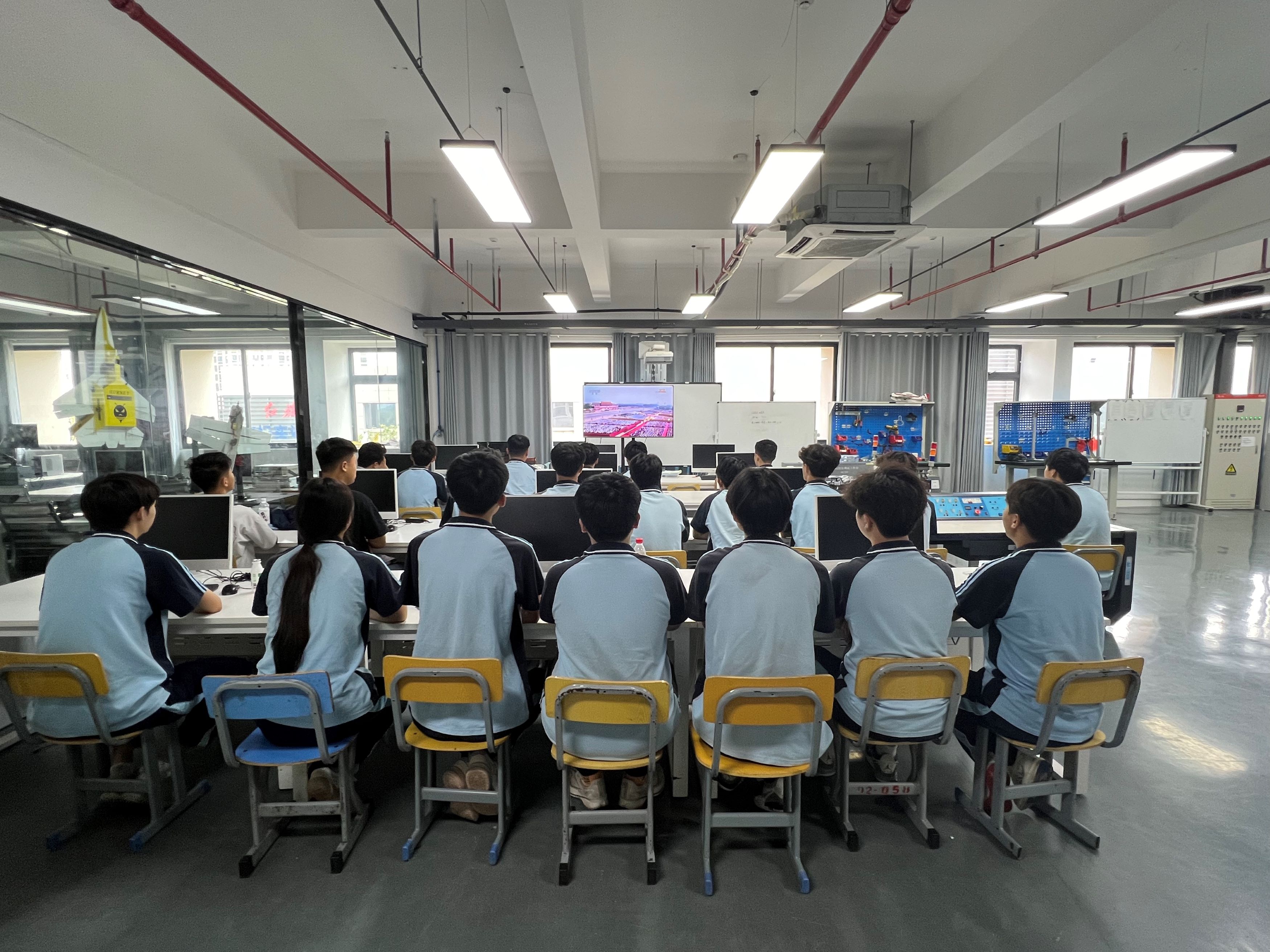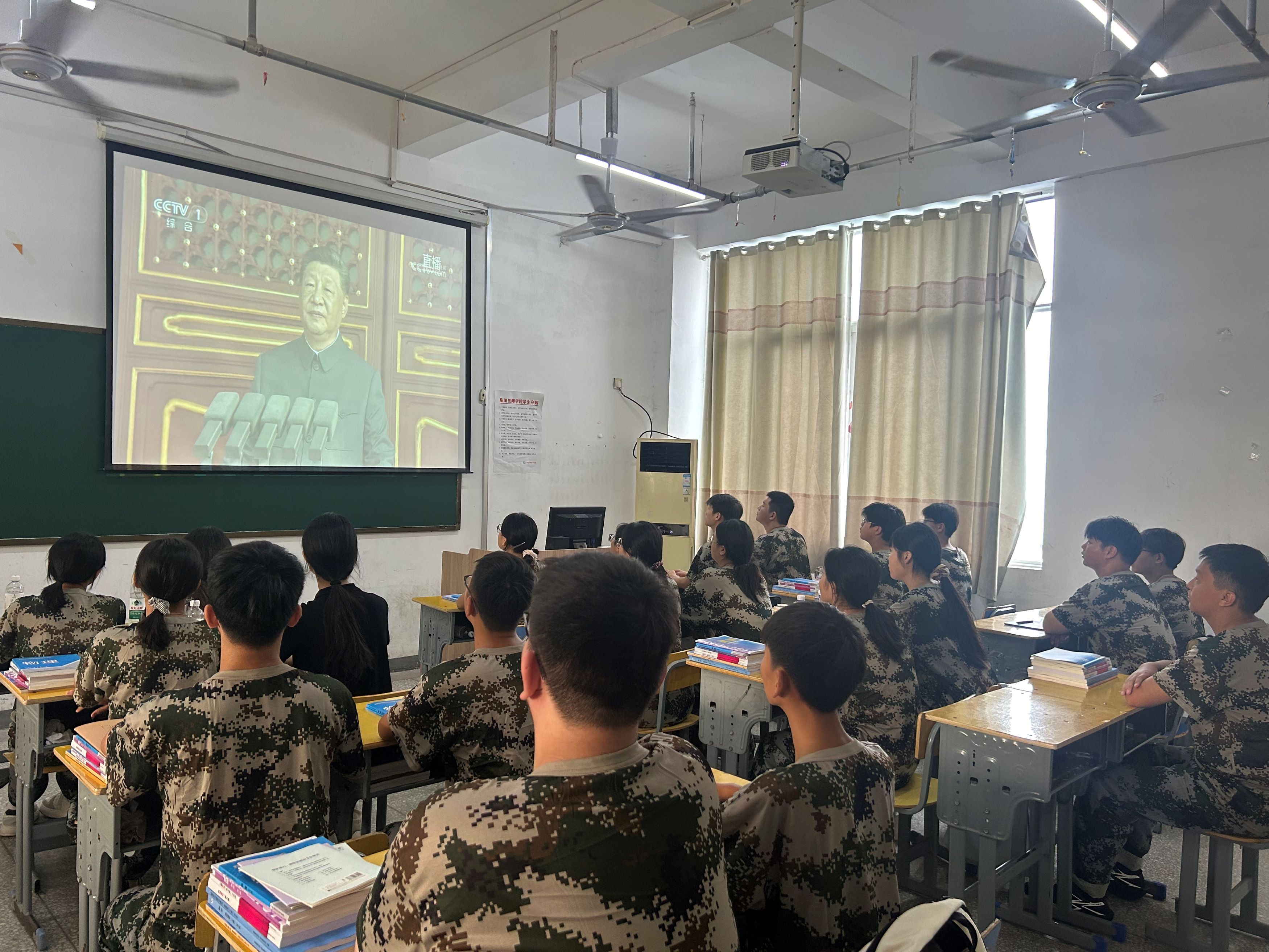 机电工程系组织师生收看纪念中国人民抗日战争暨世界 反法西斯战争胜利80周年大会